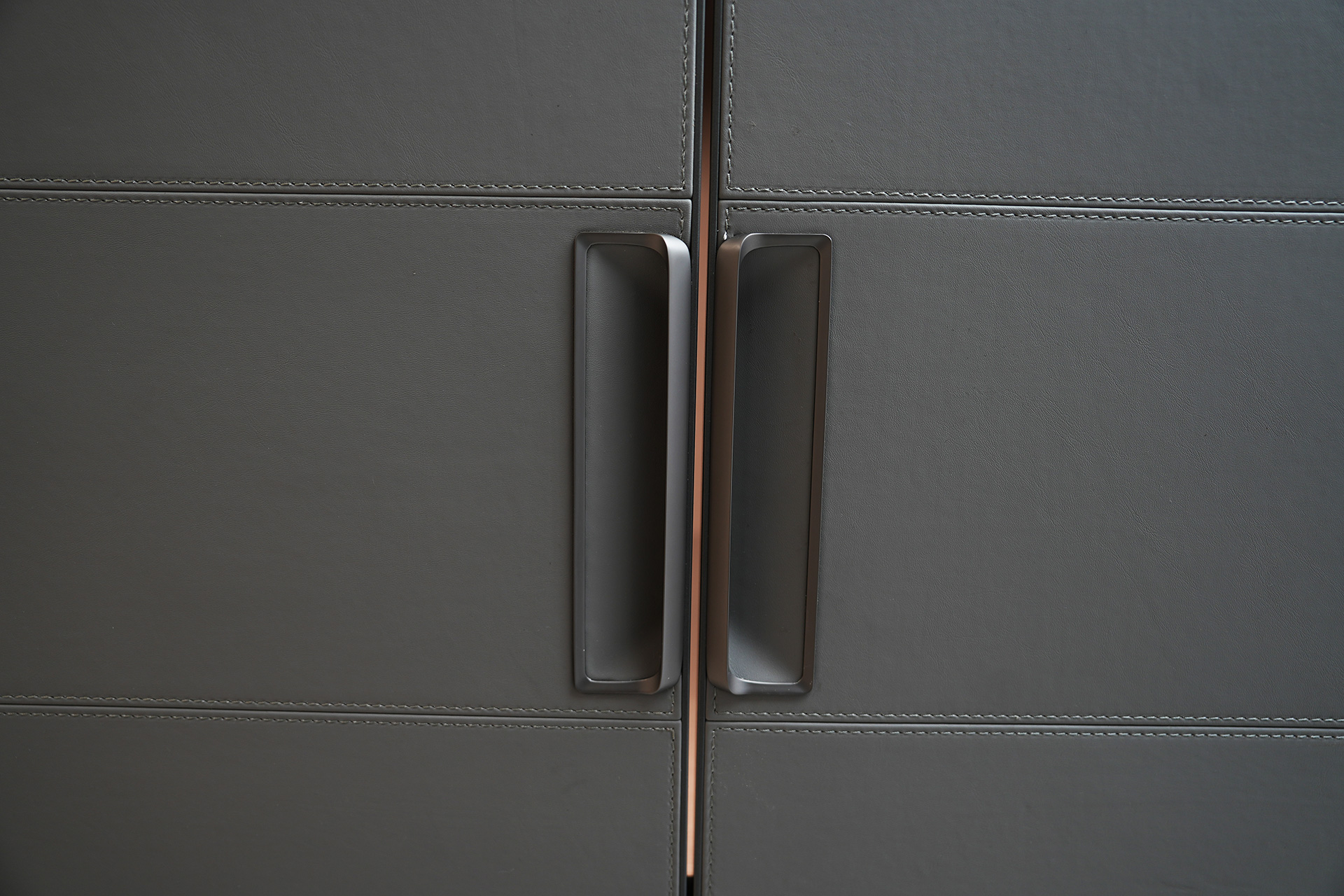 Immerse yourself in exquisite leather luxury: panels of rich Hermes Orange and sophisticated slate-grey hide lend tactile warmth to sculptural storage. Tinted glass showcases and soft-close drawers nestle within a walnut-veneered frame, while slender LED accents trace each hinge and rail. Every detail celebrates masterful craftsmanship, transforming your wardrobe into an artful sanctuary of refined order.